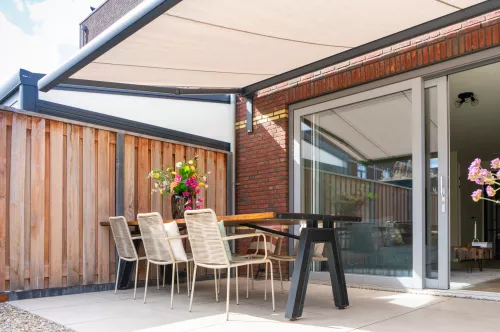 Daarnaast biedt een zonnescherm extra privacy en geeft het je gevel een verzorgde, stijlvolle uitstraling. Of je nu kiest voor een handmatig bedienbaar scherm of een elektrisch model met afstandsbediening – het gemak is groot.